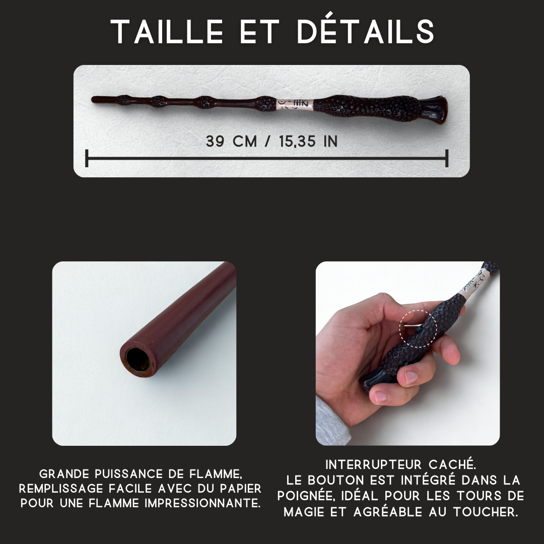 Fabriquée avec des matériaux de haute qualité, cette baguette magique allie élégance et résistance. Avec son design authentique et sa finition soignée, elle est idéale pour les apprentis sorciers et les maîtres de la magie.